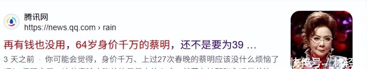2.腾讯网:再有钱也没用,64岁身价千万的蔡明,还不是要�岁儿子操碎了心